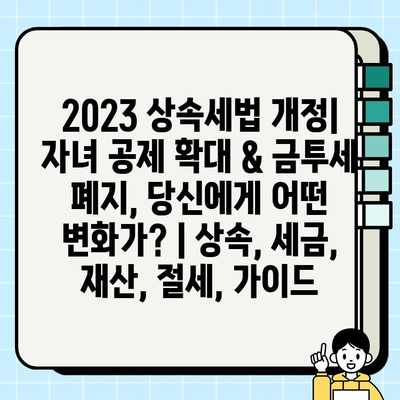 2023년 상속세법 개정은 자녀의 상속세 부담을 줄이는 데 초점을 맞추고 있습니다.