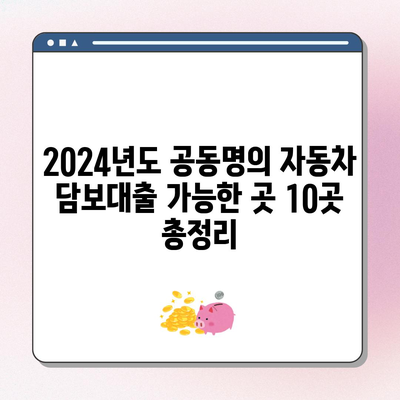 공동명의 자동차 담보대출 가능한 곳 총정리에서 다양한 대출 상품을 상세히 설명합니다. 대출 조건과 특징을 확인하세요!