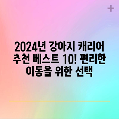 💡 2024년 강아지 캐리어의 최적 가격과 추천 정보를 확인해 보세요. 💡