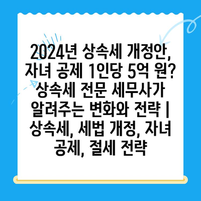 2024년 상속세 개정안, 자녀 공제 1인당 5억 원? 상속세 전문 세무사가 알려주는 변화와 전략 | 상속세, 세법 개정, 자녀 공제, 절세 전략