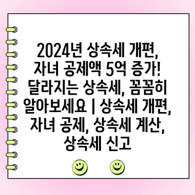 2024년 상속세 개편, 자녀 공제 5억 증가! 달라지는 상속세, 꼼꼼히 알아보세요 | 상속세 개편, 자녀 공제, 상속세 계산, 상속세 신고