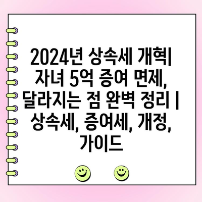 2024년 상속세 개혁| 자녀 5억 증여 면제, 달라지는 점 완벽 정리 | 상속세, 증여세, 개정, 가이드