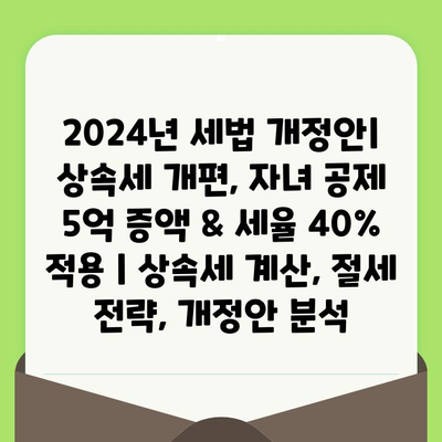 2024년 세법 개정안| 상속세 개편, 자녀 공제 5억 증액 & 세율 40% 적용 | 상속세 계산, 절세 전략, 개정안 분석