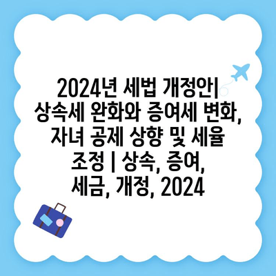 2024년 세법 개정안| 상속세 완화와 증여세 변화, 자녀 공제 상향 및 세율 조정 | 상속, 증여, 세금, 개정, 2024