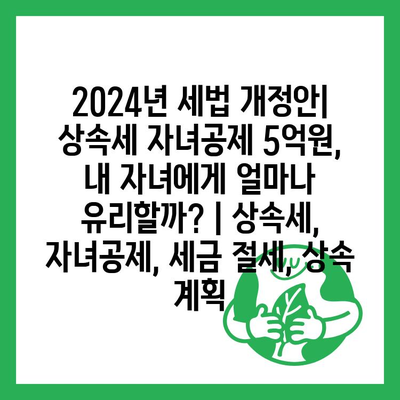 2024년 세법 개정안| 상속세 자녀공제 5억원, 내 자녀에게 얼마나 유리할까? | 상속세, 자녀공제, 세금 절세, 상속 계획