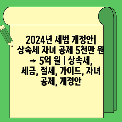 2024년 세법 개정안 | 상속세 자녀 공제 5천만 원 → 5억 원 | 상속세, 세금, 절세, 설명서, 자녀 공제, 개정안