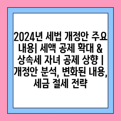 2024년 세법 개정안 주요 내용| 세액 공제 확대 & 상속세 자녀 공제 상향 | 개정안 분석, 변화된 내용, 세금 절세 전략