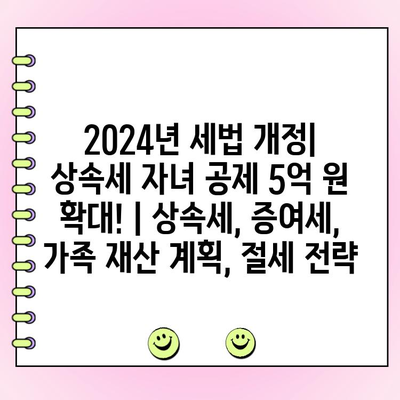2024년 세법 개정| 상속세 자녀 공제 5억 원 확대! | 상속세, 증여세, 가족 재산 계획, 절세 전략
