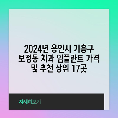 2024년 용인시 기흥구 보정동 치과 임플란트 가격 및 추천 상위 17곳