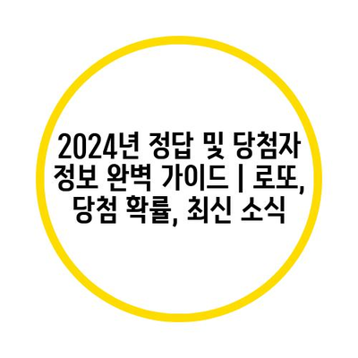 2024년 정답 및 당첨자 정보 완벽 설명서 | 로또, 당첨 확률, 최신 소식
