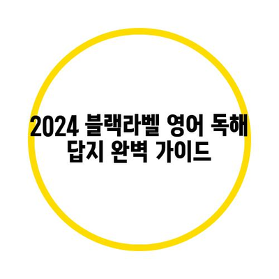 2024 블랙라벨 영어 독해 답지 완벽 가이드