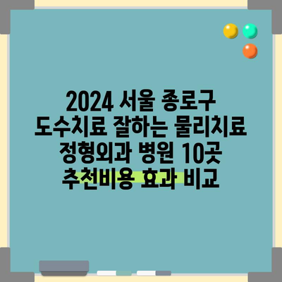 2024 서울 종로구 도수치료 잘하는 물리치료 정형외과 병원 10곳 추천비용 효과 비교