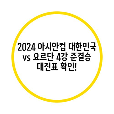Meta Description: 2024 아시안컵 대한민국 요르단 4강 준결승 대진표에 대한 심층 분석과 경기 전략, 역사적 대결을 살펴보세요!
