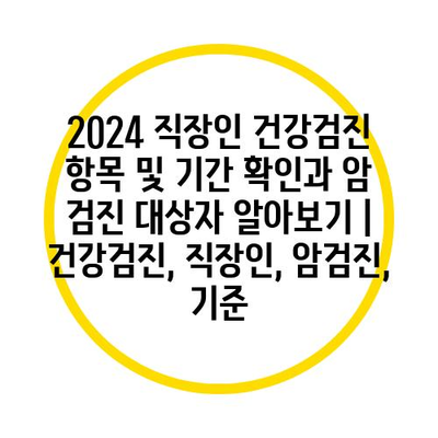 2024 직장인 건강검진 항목과 날짜을 확인하고, 암 검진 대상자를 알아보는 것은 중요합니다.