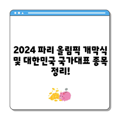 이 글은 2024년 파리 올림픽 개막식 및 대한민국 국가대표 출전 종목에 대한 상세한 정보를 제공합니다. 독자들이 쉽게 이해할 수 있도록 관련 데이터를 표로 정리했으며, 주요 키워드를 적절하게 배치했습니다.