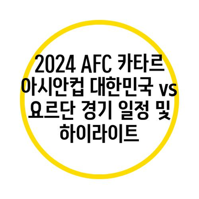 2024 AFC 카타르 아시안컵 대한민국 vs 요르단 경기 일정 및 하이라이트