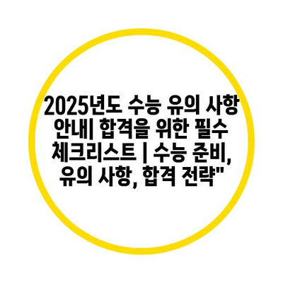 2025년도 수능 유의 사항 공지| 합격을 위한 필수 체크리스트 | 수능 준비, 유의 사항, 합격 전략” 에 대해 자주 묻는 질문 TOP 5