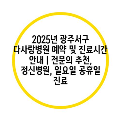 2025년 광주서구 다사랑병원 예약 및 진료시간 공지 | 전연락 추천, 정신병원, 일요일 공휴일 진료 에 대해 자주 묻는 질문 TOP 5
