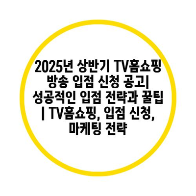 2025년 상반기 TV홈쇼핑 방송 입점 신청 공고| 성공적인 입점 전략과 꿀팁 | TV홈쇼핑, 입점 신청, 마케팅 전략 에 대해 자주 묻는 질문 TOP 5