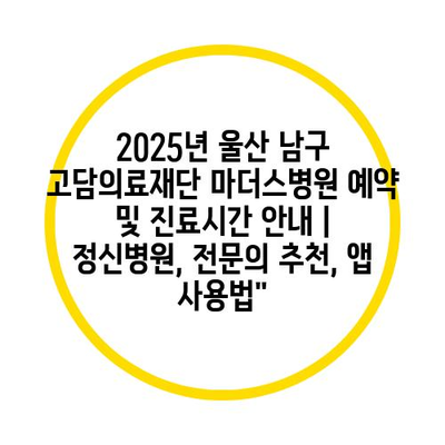2025년 울산 남구 고담의료재단 마더스병원 예약 및 진료시간 공지 | 정신병원, 전연락 추천, 앱 사용법
