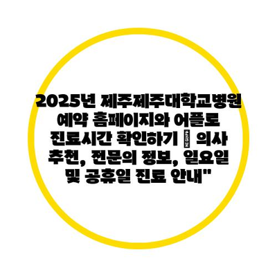 2025년 제주제주대학교병원 예약 홈페이지와 어플로 진료시간 확인하기 | 의사 추천, 전연락 정보, 일요일 및 공휴일 진료 공지