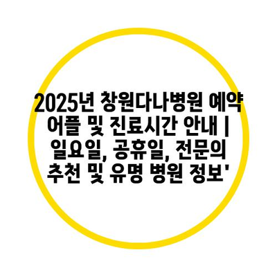 2025년 창원다나병원 예약 어플 및 진료시간 안내 | 일요일, 공휴일, 전문의 추천 및 유명 병원 정보’