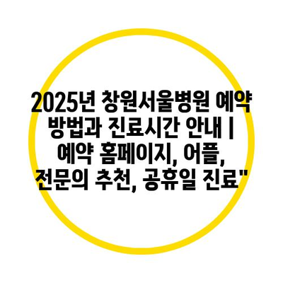 2025년 창원서울병원 예약 방법과 진료시간 안내 | 예약 홈페이지, 어플, 전문의 추천, 공휴일 진료”