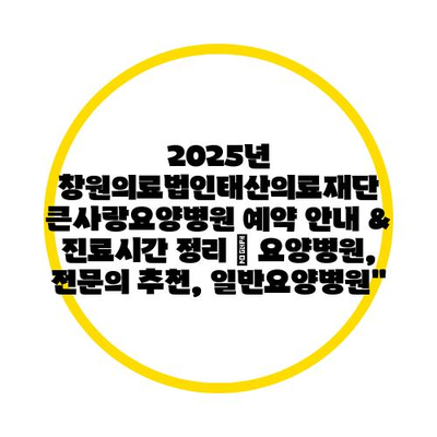 2025년 창원의료법인태산의료재단 큰사랑요양병원 예약 안내 & 진료시간 정리 | 요양병원, 전문의 추천, 일반요양병원”