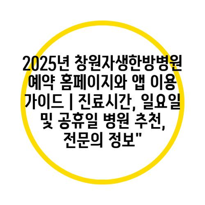 2025년 창원자생한방병원 예약 홈페이지와 앱 이용 설명서 | 진료시간, 일요일 및 공휴일 병원 추천, 전연락 정보” 에 대해 자주 묻는 질문 TOP 5