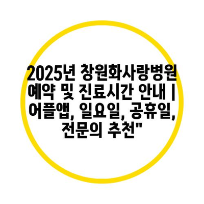 2025년 창원화사랑병원 예약 및 진료시간 공지 | 어플앱, 일요일, 공휴일, 전연락 추천에 대해 자주 묻는 질문 TOP 5