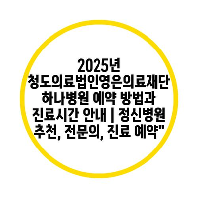 2025년 청도의료법인영은의료재단 하나병원 예약 방법과 진료시간 공지 | 정신병원 추천, 전연락, 진료 예약에 대해 자주 묻는 질문 TOP 5