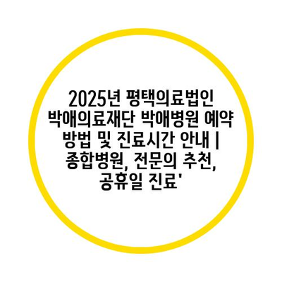 2025년 평택의료법인 박애의료재단 박애병원 예약 방법 및 진료시간 공지 | 종합병원, 전연락 추천, 공휴일 진료’에 대해 자주 묻는 질문 TOP 5