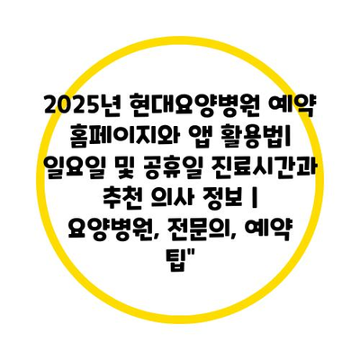 2025년 현대요양병원 예약 홈페이지와 앱 활용법| 일요일 및 공휴일 진료시간과 추천 의사 정보 | 요양병원, 전연락, 예약 팁