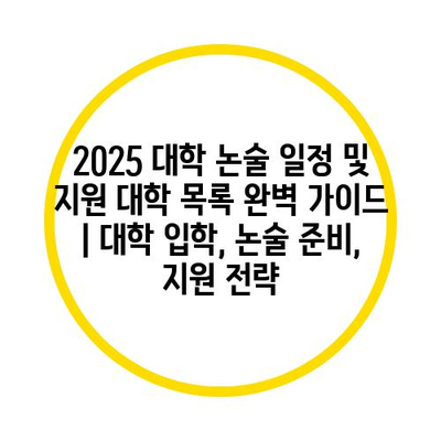 2025 대학 논술 일정 및 지원 대학 목록 완벽 설명서 | 대학 입학, 논술 준비, 지원 전략