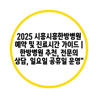 2025 시흥시흥한방병원 예약 및 진료시간 가이드 | 한방병원 추천, 전문의 상담, 일요일 공휴일 운영”