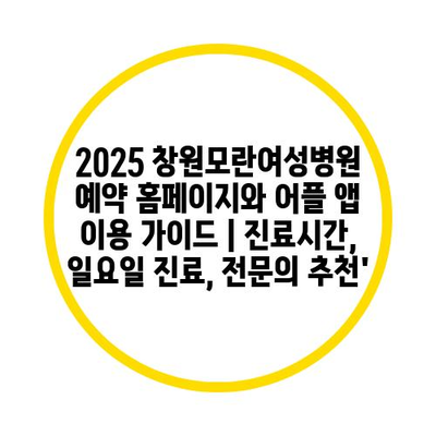 2025 창원모란여성병원 예약 홈페이지와 어플 앱 이용 설명서 | 진료시간, 일요일 진료, 전연락 추천’ 에 대해 자주 묻는 질문 TOP 5