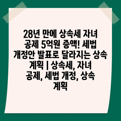 28년 만에 상속세 자녀 공제 5억원 증액! 세법 개정안 발표로 달라지는 상속 계획 | 상속세, 자녀 공제, 세법 개정, 상속 계획