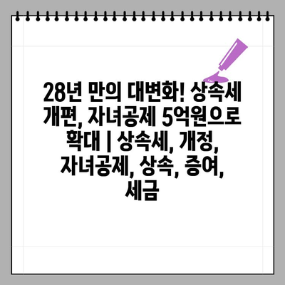 ✅ 28년 만의 상속세 개편! 자녀공제 5억원 확대로 얼마나 달라졌을까요? 자세히 알아보세요.