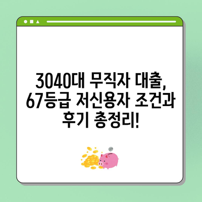 3040대 무직자 대출, 67등급 저신용자 조건과 후기 총정리!