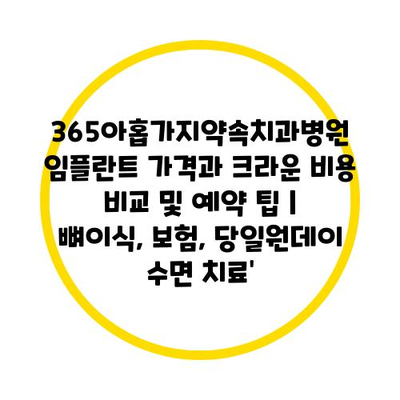 365아홉가지약속치과병원 임플란트 가격과 크라운 비용 비교 및 예약 팁 | 뼈이식, 보험, 당일원데이 수면 치료를 위한 유용한 내용을 알려알려드리겠습니다.