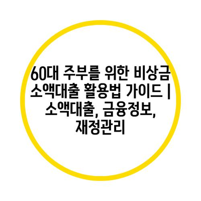60대 주부를 위한 비상금 소액대출 활용법 설명서에서 소액대출의 기본 개념과 활용 방법을 소개합니다.