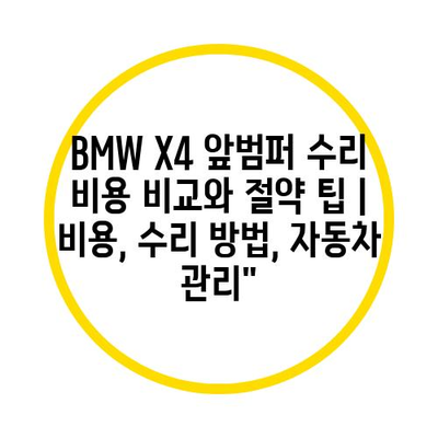 BMW X4 앞범퍼 수리 비용 비교와 절약 팁 | 비용, 수리 방법, 자동차 관리에 대해 소개합니다.