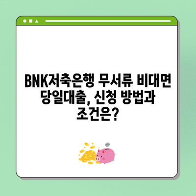 BNK저축은행 무서류 비대면 당일대출, 신청 방법과 조건은?