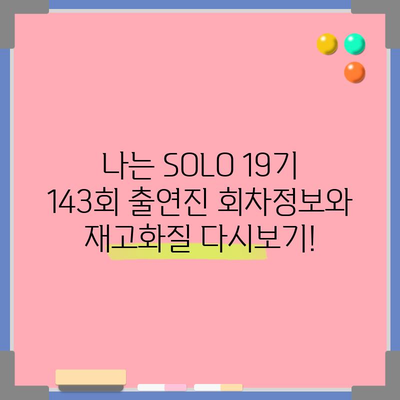 나는 SOLO 19기 143회 출연진 회차정보와 재고화질 다시보기!