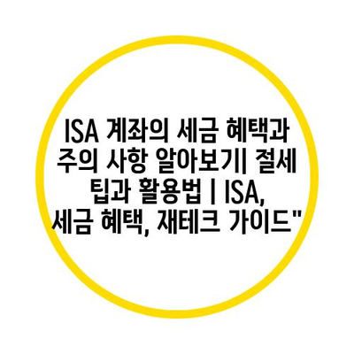 ISA 계좌의 세금 혜택과 주의 사항 알아보기| 절세 팁과 활용법 | ISA, 세금 혜택, 재테크 가이드”