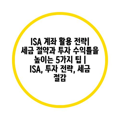 ISA 계좌 활용 전략| 세금 절약과 투자 수익률을 높이는 5가지 팁 | ISA, 투자 전략, 세금 절감