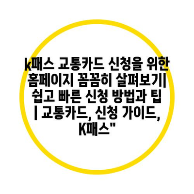 k패스 교통카드 신청을 위한 홈페이지 꼼꼼히 살펴보기| 쉽고 빠른 신청 방법과 팁 | 교통카드, 신청 가이드, K패스”