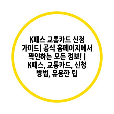 K패스 교통카드 신청 설명서| 공식 홈페이지에서 확인하는 모든 정보! | K패스, 교통카드, 신청 방법, 유용한 팁 에 대해 자주 묻는 질문 TOP 5