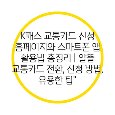 먼저, K패스 교통카드의 신청 방법에 대해 설명하겠습니다. 간단한 절차를 통해 온라인에서 빠르게 신청할 수 있으며, 구체적인 공지는 홈페이지를 참고하면 됩니다. 홈페이지에서는 카드 발급과 관련된 모든 내용을 한눈에 확인할 수 있습니다.