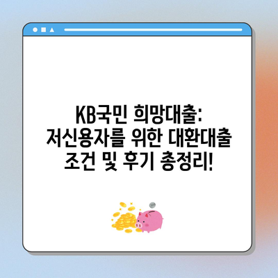 KB국민 희망대출: 저신용자를 위한 대환대출 조건 및 후기 총정리!